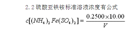 因此每次做實驗都要同時標定,而且要與樣品同時滴定,特別是要和樣品選用同樣的硫酸和稀釋水。硫酸亞鐵銨濃度主要受滴定和標定以及純度的影響。