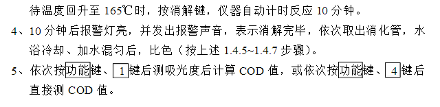 COD快速測定儀(TL-1A) 1.2.2 分光光度計(721) 1.2.3 水浴塑料盆 1.2.4 14ml專用刻度試管及試管架(若干) 1.2.5 1.00ml專用刻度吸管(2只) 1.2.6 5.00ml專用刻度吸管(2只) 1.2.7 吸耳球 1.3 試劑 1.3.1 專用氧化劑 1.3.2 專用催化劑 1.3.3 氯掩蔽劑:稱取20g硫酸汞溶于1:10稀硫酸中,定容**100ml,