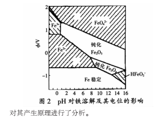 當零價鐵如鐵屑(活性炭)作為主填料的靜態(tài)床或滴流床與廢水發(fā)生電化學反應時, 鐵與炭形成無數(shù)微小的原電池,零價鐵作為陽極氧化而消耗,發(fā)生的電極反應如下: