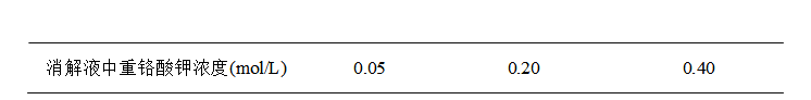 消解液:稱取9.8 g重鉻酸鉀(分析純)、25.0 g硫酸鋁鉀(分析純)、5.0 g鉬酸銨(分析純),溶解于250 mL水中,加入100 mL濃硫酸,冷卻后,轉(zhuǎn)移**500 mL容量瓶中,用蒸餾水稀釋**標(biāo)線。該溶液重鉻酸鉀濃度約為0.4 mol/L (C = 1/6 K2Cr2O7)。